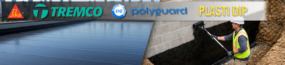 Waterproofing & Coatings offers premium moisture protection and surface sealing solutions for concrete, decks, foundations, and building exteriors. Featuring top brands like Tremco 350NF, 351NF, 801, HLM 5000 GC, and 250 GC; Lanco Silinocizer; and Polyguard DeckGuard HT, Term Flashing, and Blue Barrier Liquid Wrap. Rubberized coatings include Plasti Dip gallons and aerosols for durable, flexible, and weather-resistant finishes. Ideal for commercial waterproofing, residential repairs, and industrial coating applications.